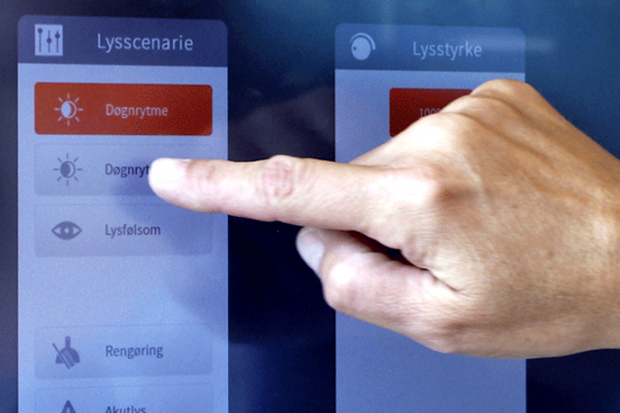 From here it is possible to switch between circadian light, emergency light and coloured lights. The lighting has a major human-centric element to stimulate the staff and patients’ circadian rhythm. Feedback says it is already assisting staff and patients to sleep better at night and boosting their well-being in the daytime.